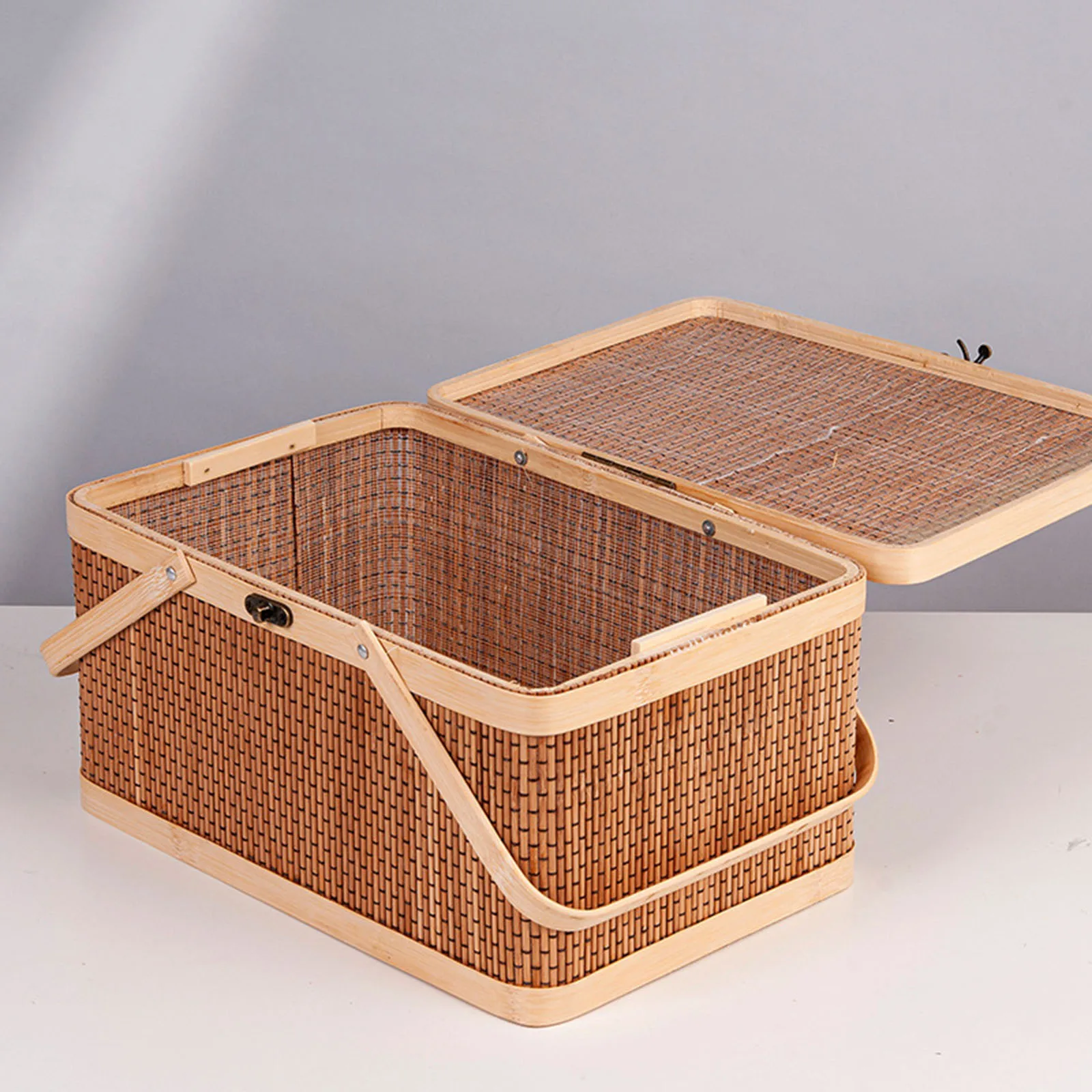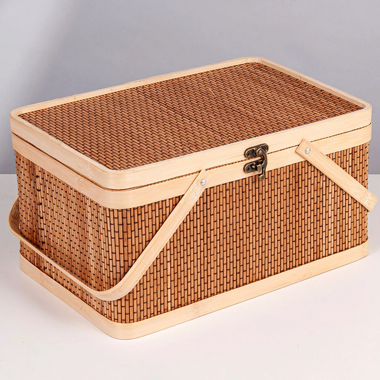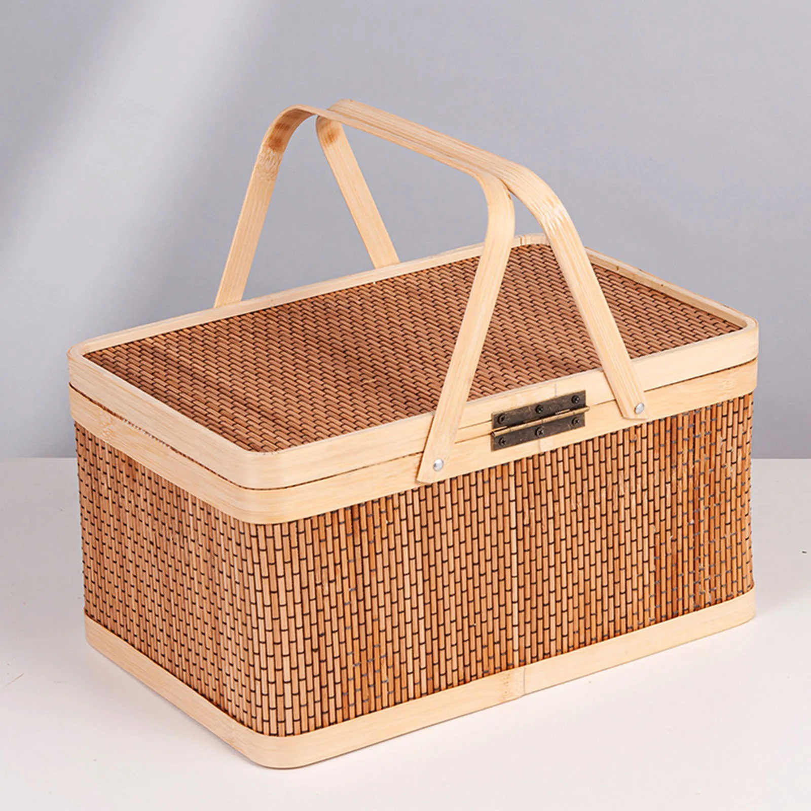 Handwoven Bamboo Picnic Basket with Lid & Handle – Food & Snack Storage