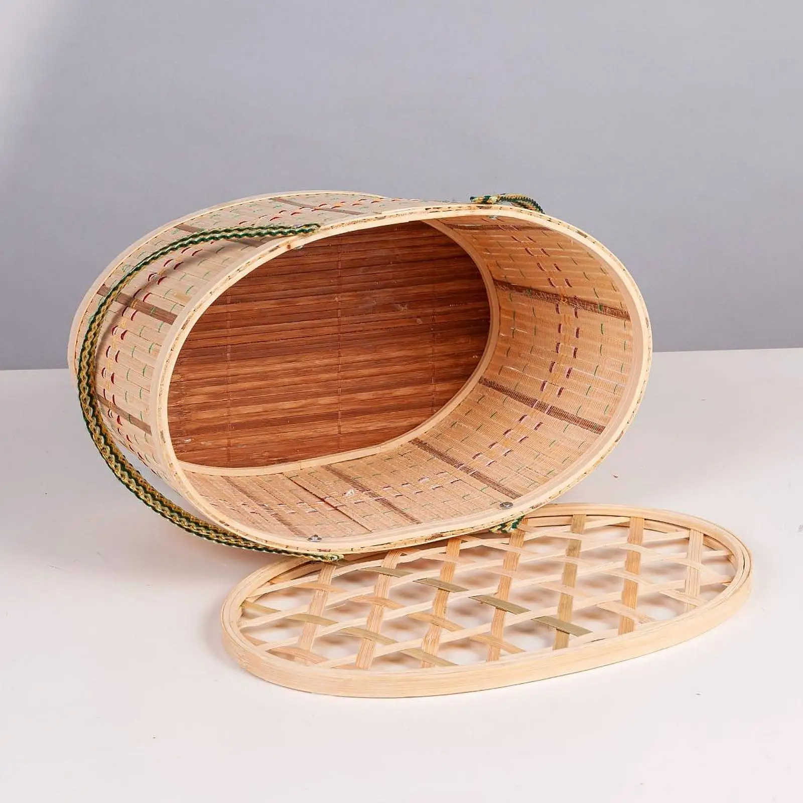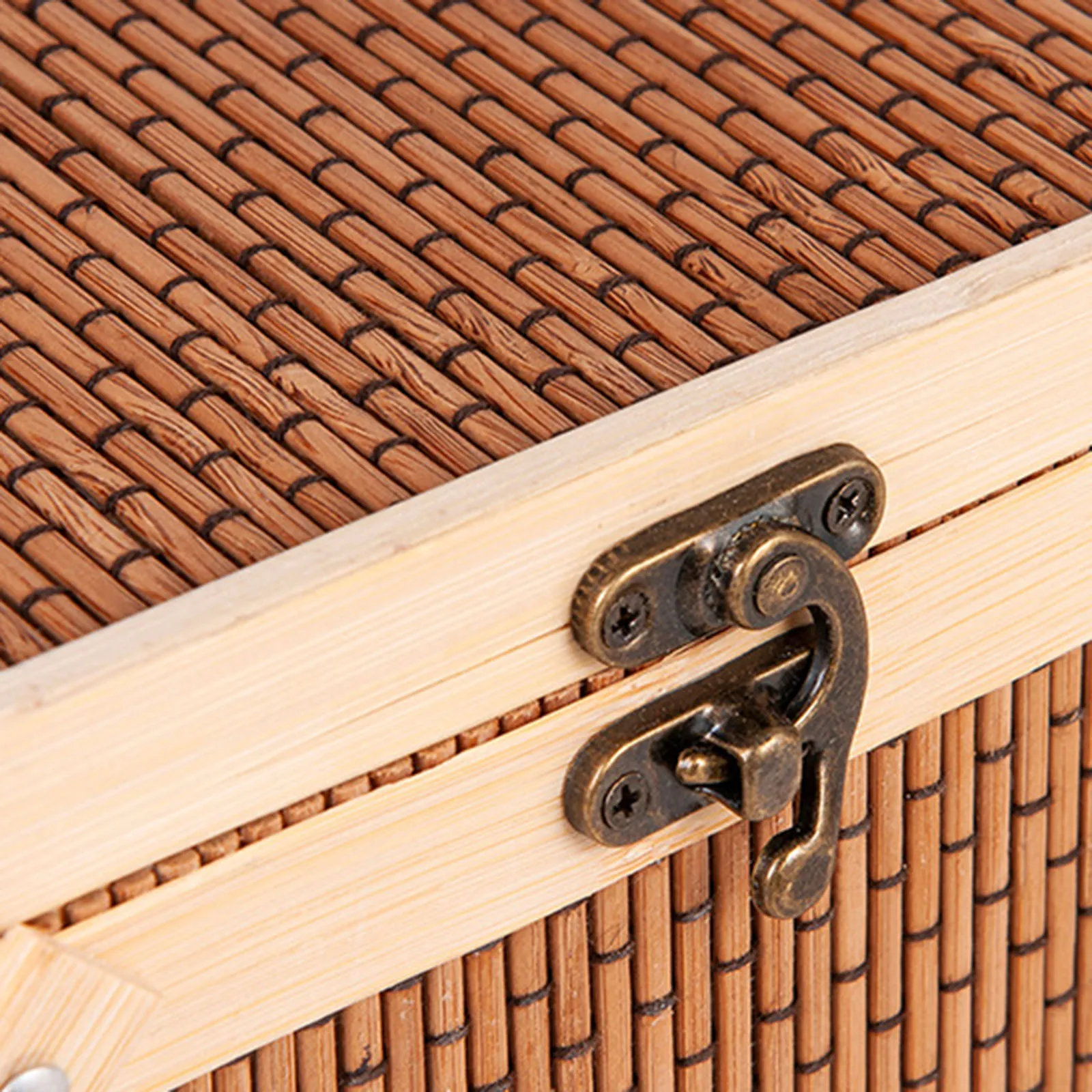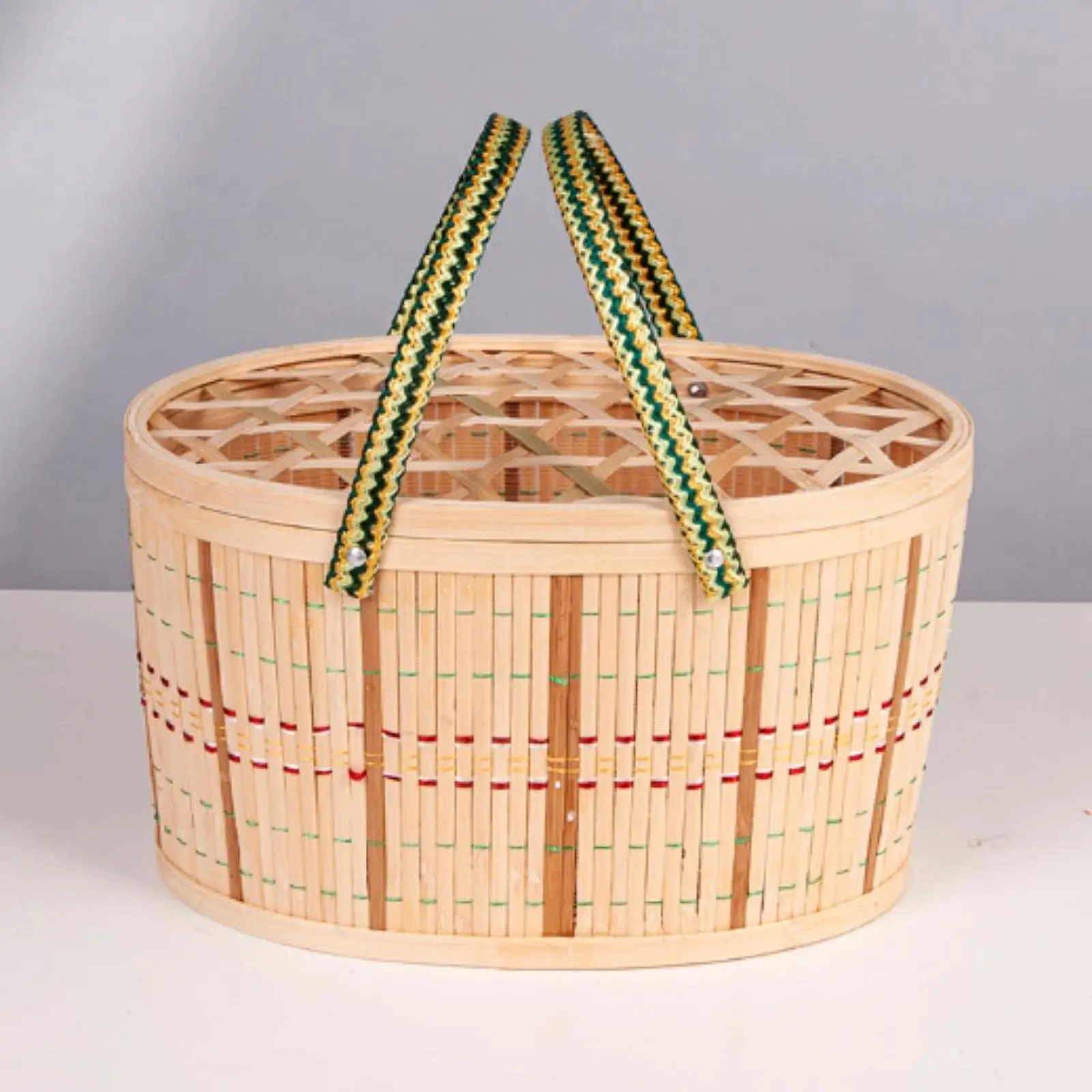 Handwoven Bamboo Picnic Basket with Lid & Handle – Food & Snack Storage